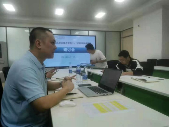 2021年9月15日,時隔半月,總經理何靖之一行人再次前往江蘇食品藥品職業技術學院,向制藥工程學院的領導及專家組匯報1+X藥物制劑設備選型方案,研討會上,經過詳細溝通、熱烈討論、實地勘測,初步擬定藥物制劑方案,為下一步細化方案打好基礎。